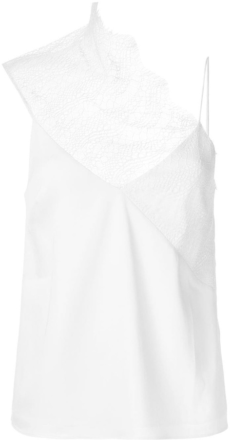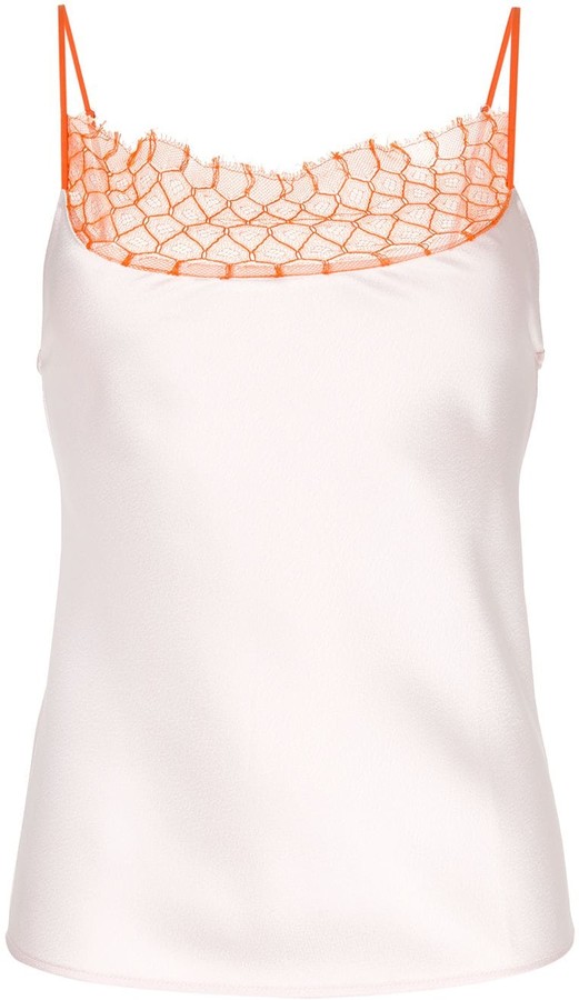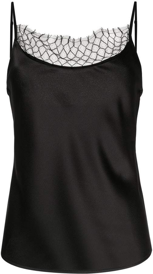 Silver-tone silk lace-detail camisole top from Christopher Esber featuring spaghetti straps, a lace detail and a slim fit.