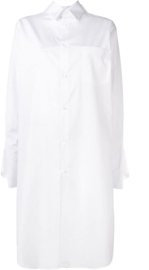 Changing perceptions in both men and womenswear, Comme Des Garçons' collections are often surprising and full of exaggerated proportions and individual execution. Crafted in Japan, this black pointed collar tulle shirt from Comme Des Garçons features a front button fastening, long sleeves, button cuffs, a chest pocket and a curved hem.