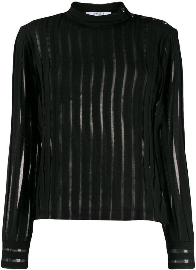 Derek Lam 10 Crosby speaks to a woman who wants urban clothing that carries her through every aspect of her life, for both formal and informal occasions. Case in point: this glamorous black and gunmetal-tone sequin stripe top. Featuring a mock neck, a fitted waist, long sleeves and a scalloped hem.