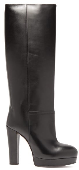 Gucci - The crackled-leather construction of Gucci's GG Marmont sandals lends a tactile spin to the glamorous mood of the metallic gold. They're designed with a waved front strap topped with the label's long-reigning GG plaque and elevated by a robust block heel. Slip them on to shimmer beneath muted evening separates for a dinner party.