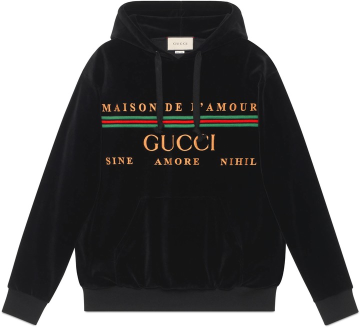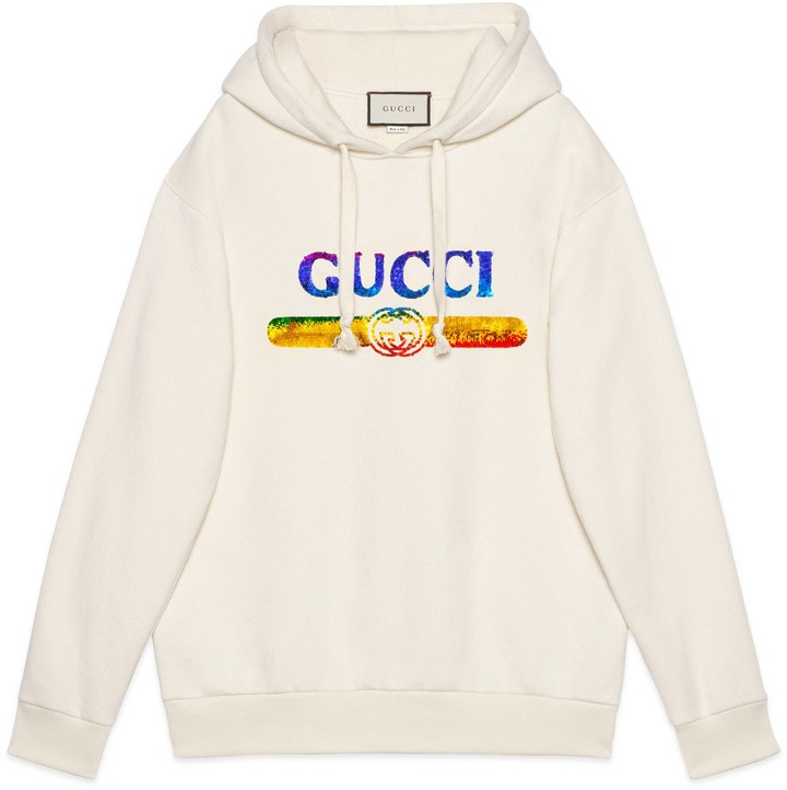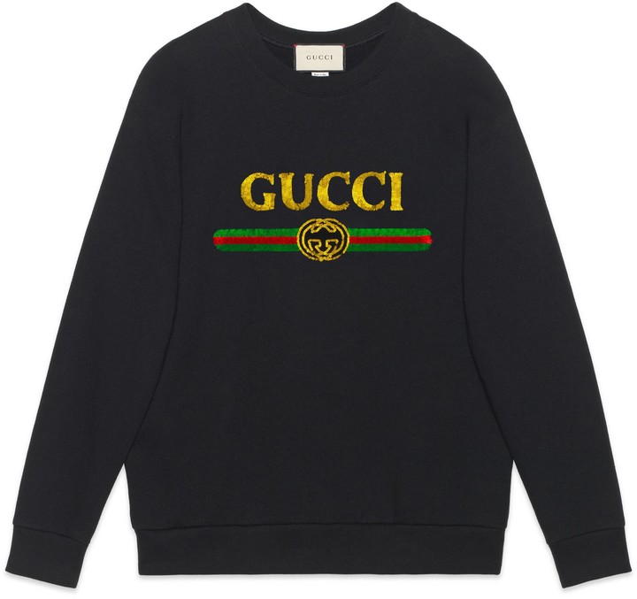 The Gucci logo is brought back to the forefront, inspired by vintage prints from the eighties. The retro-style motif is presented on the oversize sweatshirt with a needlepoint teddy bear which gives a playful touch to the sweatshirt.;Pink felted cotton jersey with Gucci vintage logo;Needlepoint teddy bear appliqué with ribbon;Relaxed, oversize fit;Crewneck;100% cotton;Made in Italy
