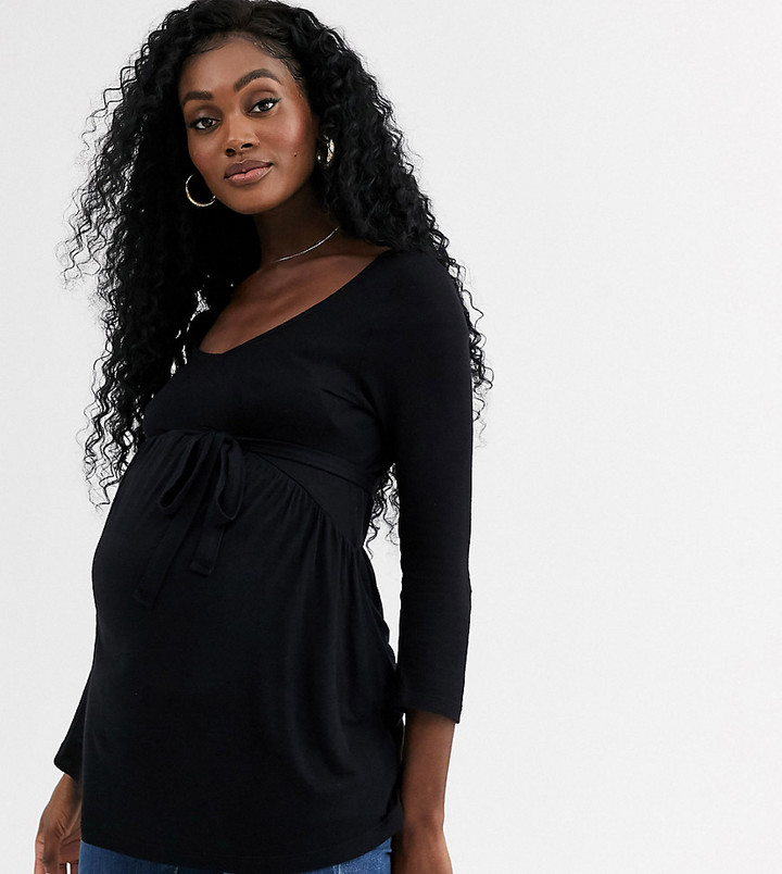 Maternity top by Mama.Licious For your daytime thing Spread collar Button placket Tie waist Long sleeves Split sides Cut longer than standard length Regular fit Designed to fit through all stages of pregnancy