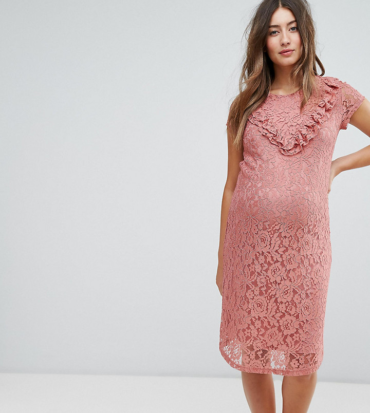 Maternity dress by Mama.Licious For your daytime thing High neck Long sleeves Frill cuffs Tiered skirt Regular fit Just select your usual size Designed to fit through all stages of pregnancy