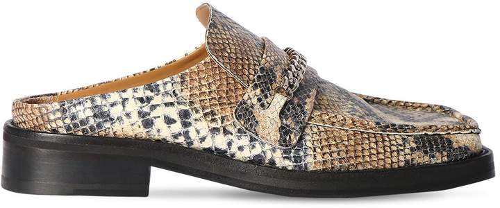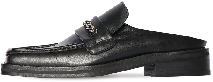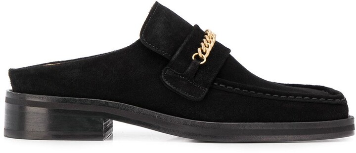 Martine Rose - Martine Rose’s black square-toe loafers are inspired by 1980s London club culture, where the designer herself grew up. They’re crafted from soft leather to a slip-on, backless silhouette with a stacked heel, silver-tone metal curb chain and tan leather lining. Team them with leather trousers for a contemporary tone.
