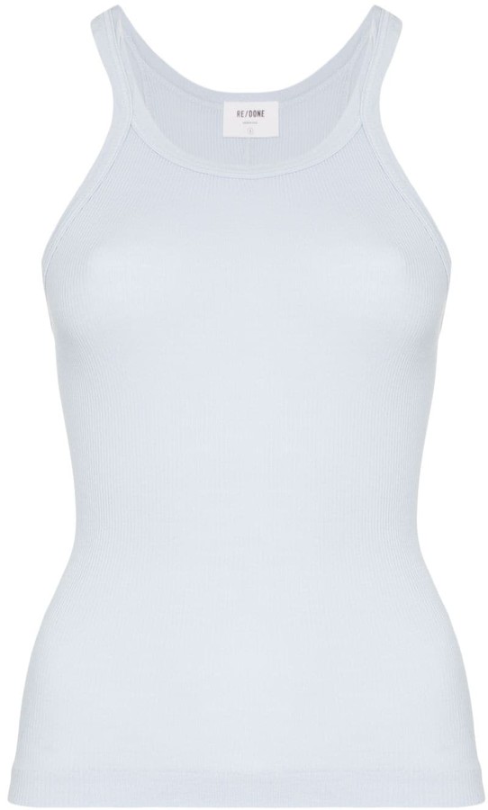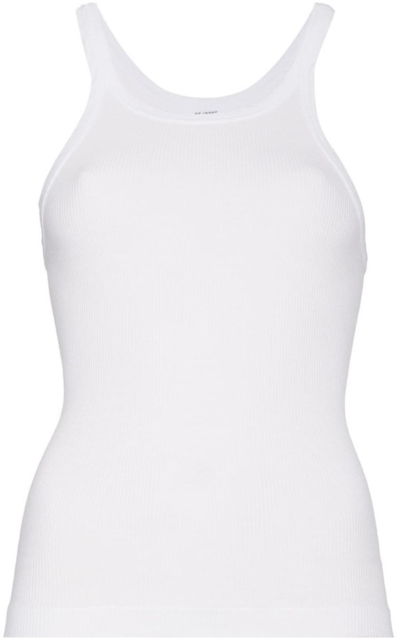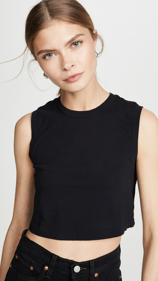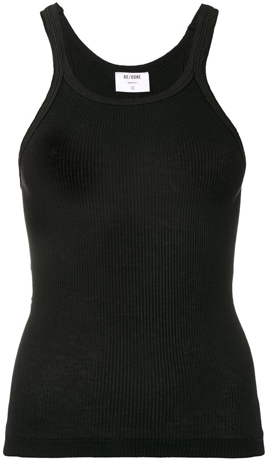 Sleeveless rib knit cotton tank top in black. Scoop neck collar.Supplier color: Black