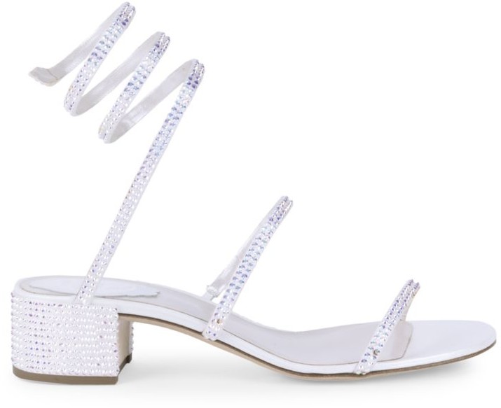 It takes about 40 steps to create one pair of René Caovilla's shoes - the precise techniques have been passed down from Italian artisans who started at the company decades ago. Made from leather-backed satin, these 'Cleo' sandals are embellished with iridescent crystals that sparkle with every step. Show off the brand's signature coiling straps with midi or mini hemlines.