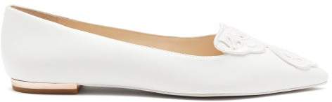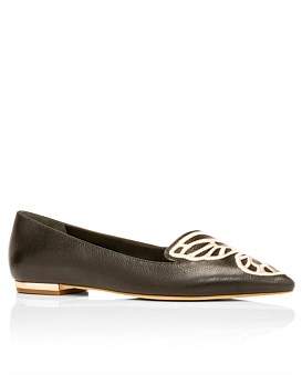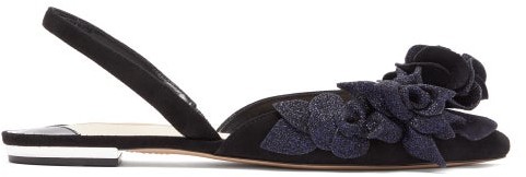 Sophia Webster - Sophia Webster’s whimsical aesthetic informs these charming Butterfly flats which are rendered in black suede for the new season. They’re shaped with a point toe and sit on a rose gold-tone metal heel which coordinates with the embroidered butterfly wing on the front – the label's signature motif. Let them add a playful touch to a sleek two-piece suit.