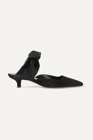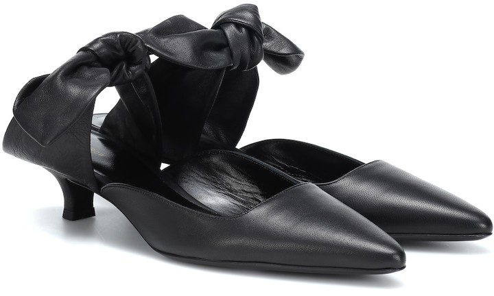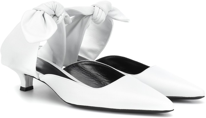 The Row - The Row applies its minimalist aesthetic to these white leather Coco mules – a coveted piece of the Resort 2019 collection. They're shaped with a point toe and a delicate kitten heel and feature coordinating straps that tie into an elegant bow across the arch of the foot. Slip them on as the muted end to a sweeping dress.